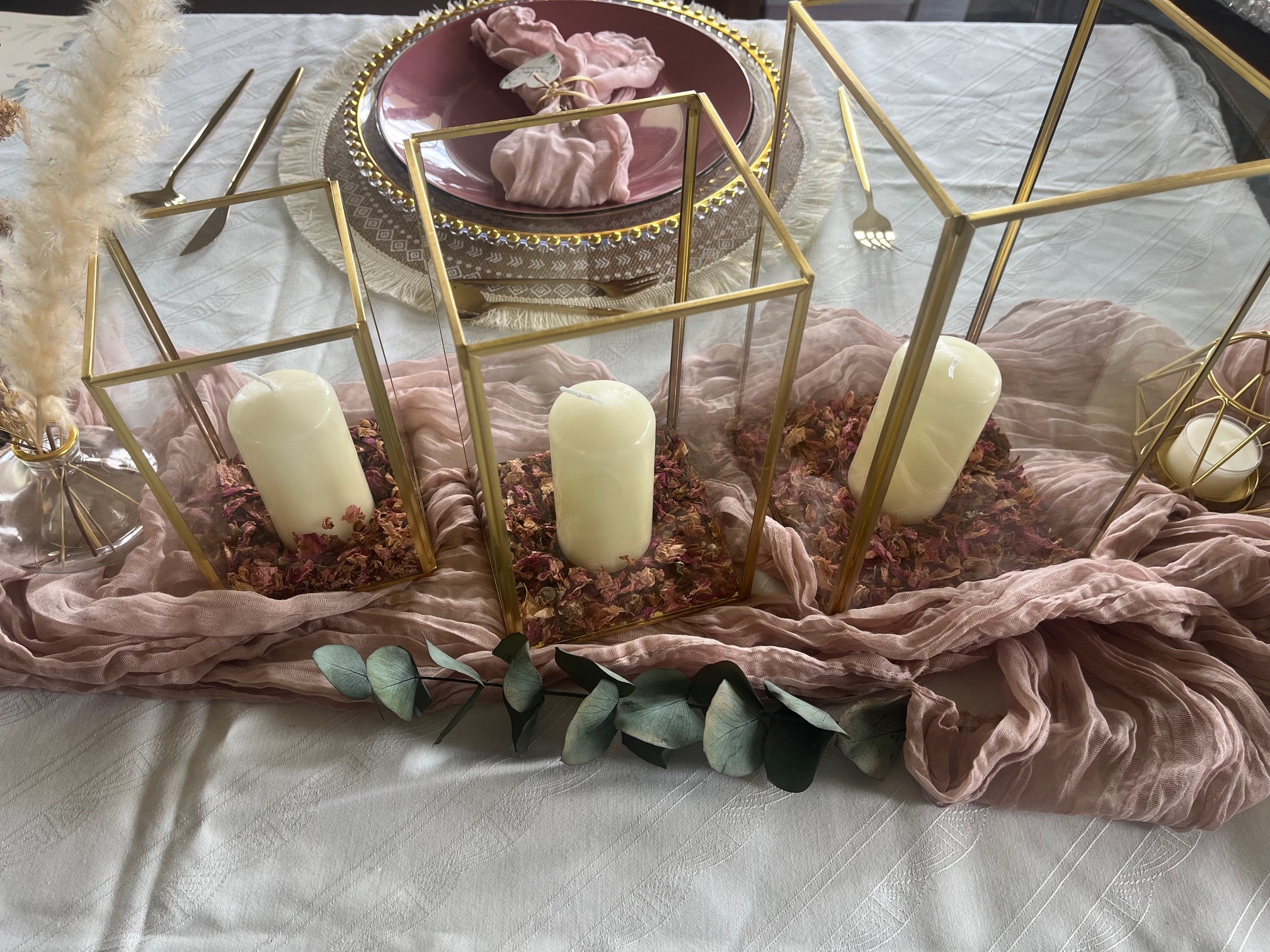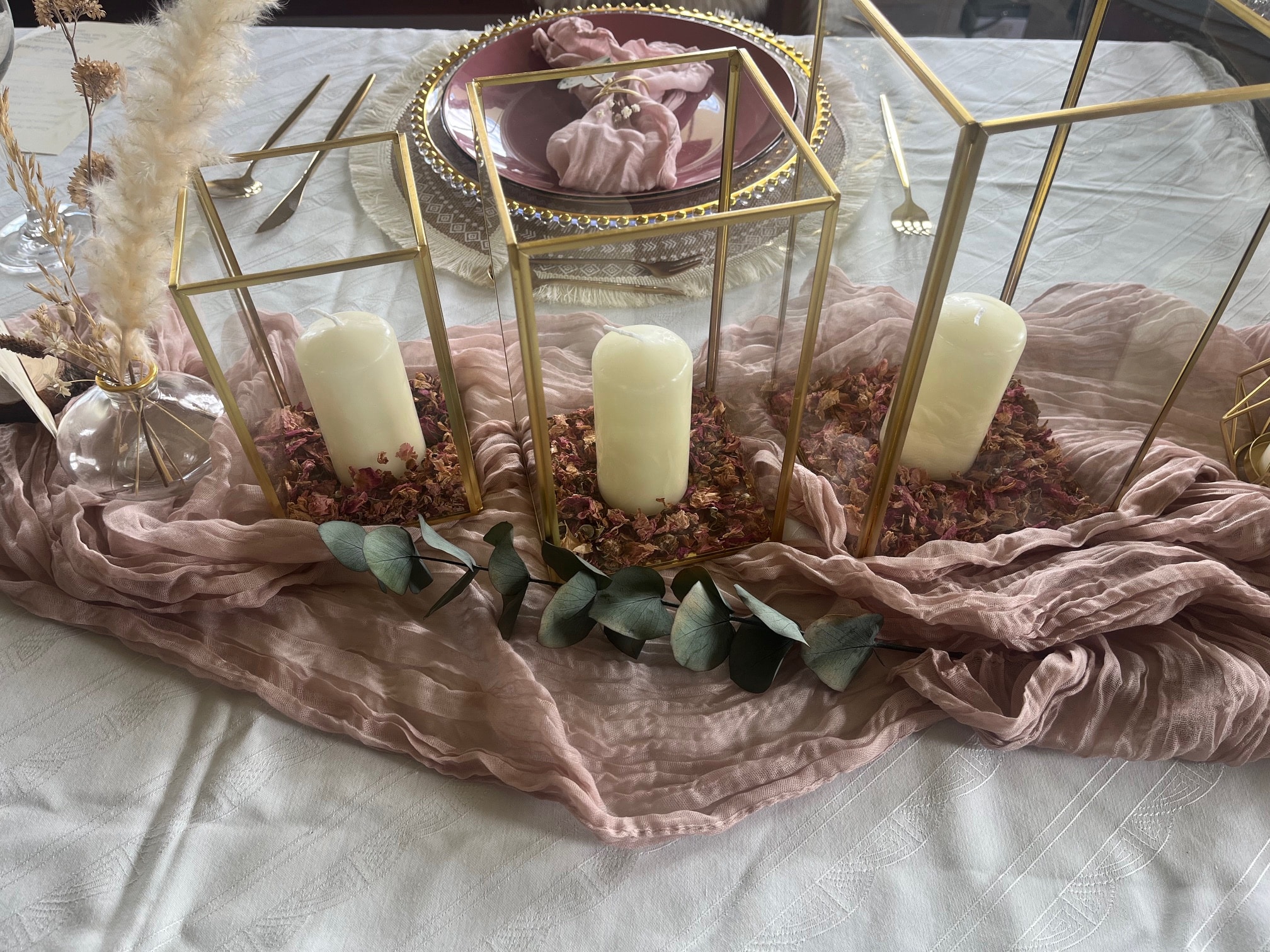 Das goldfarbene Kerzenhalterset ist ein echter Hingucker bei eurer Tischdekoration. Dabei ergänzen sie jeden Hochzeitsstil und passen perfekt zu verschiedenen Farbkombinationen. Gerne könnt Ihr die verschiedenen Größen auch einzeln mieten.
