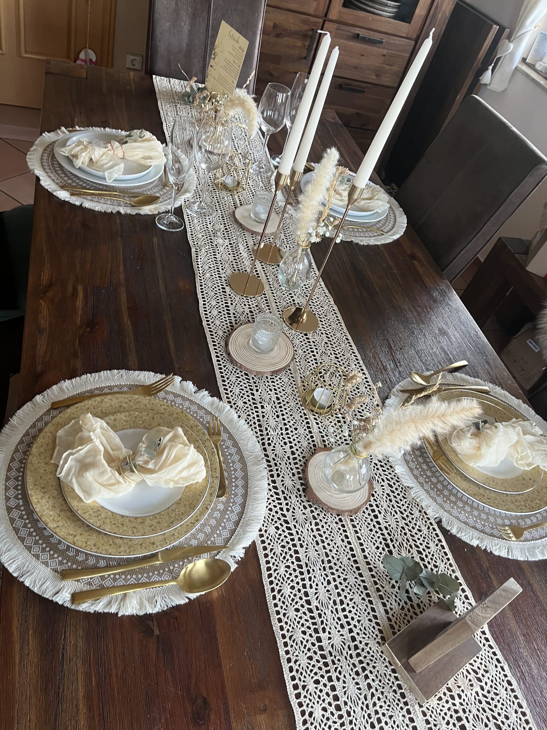 Mit unseren handgefertigten Tischläufern im Spitzen Design zaubert Ihr eurer Tischdekoration in eine natürliche und verspielte Atmosphäre. Egal ob Vintage, Boho, modern oder rusitkal, bei uns findet ihr passende Tischläufer zum Stil eurer Hochzeit.
