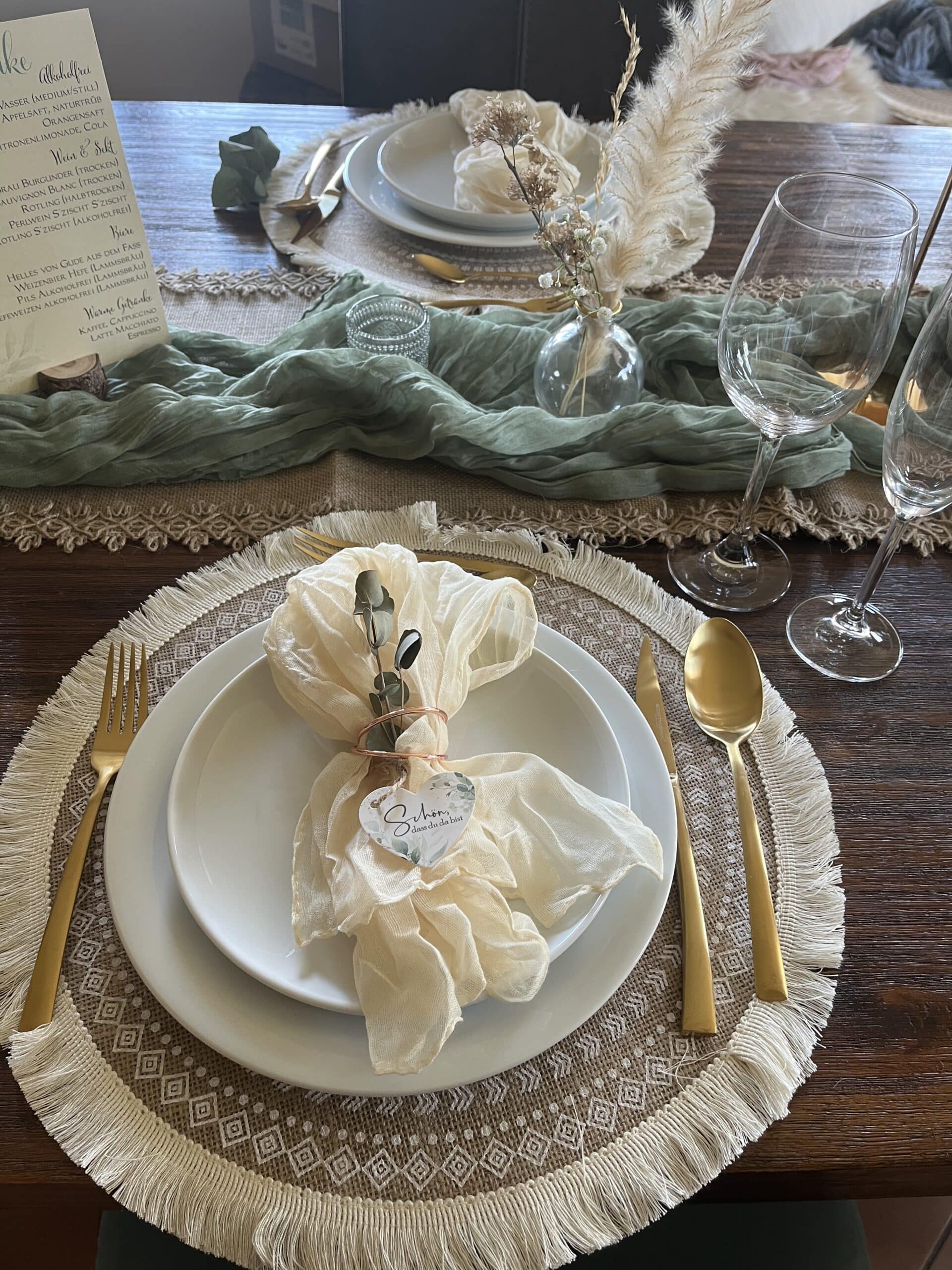 Mit unseren natürlichen Tischläufern aus Jutestoff mit Spitze zaubert Ihr eurer Tischdekoration in eine verspielte und festliche Atmosphäre. Egal ob Vintage, Boho, modern oder rusitkal, bei uns findet ihr passende Tischläufer zum Stil eurer Hochzeit.