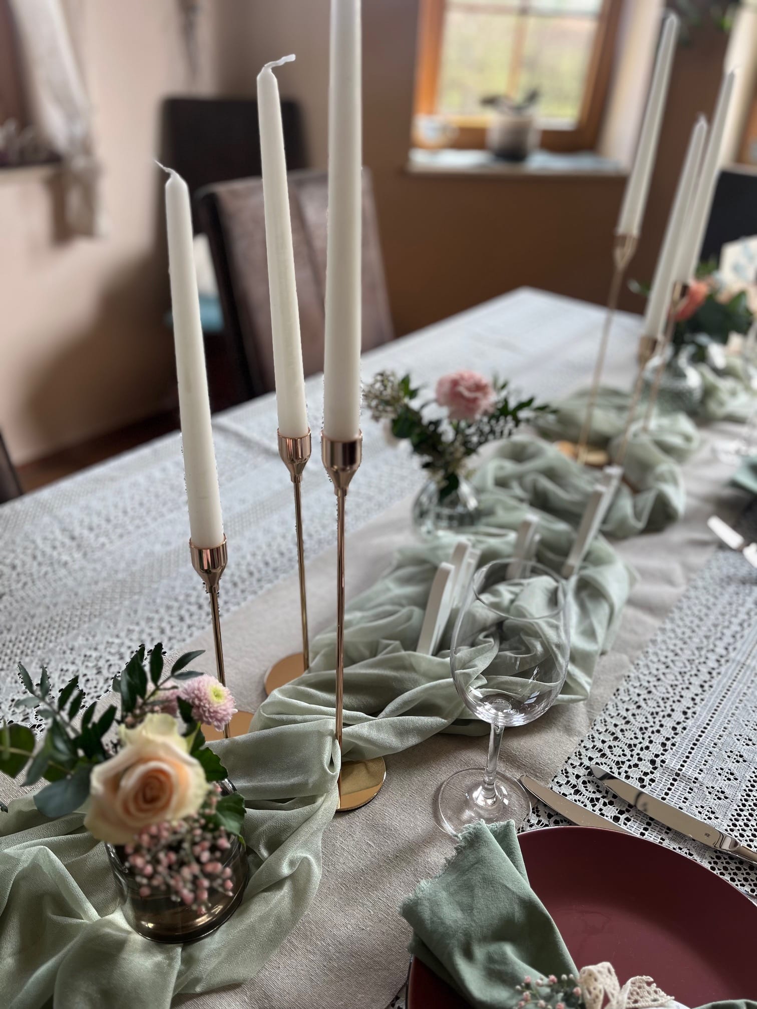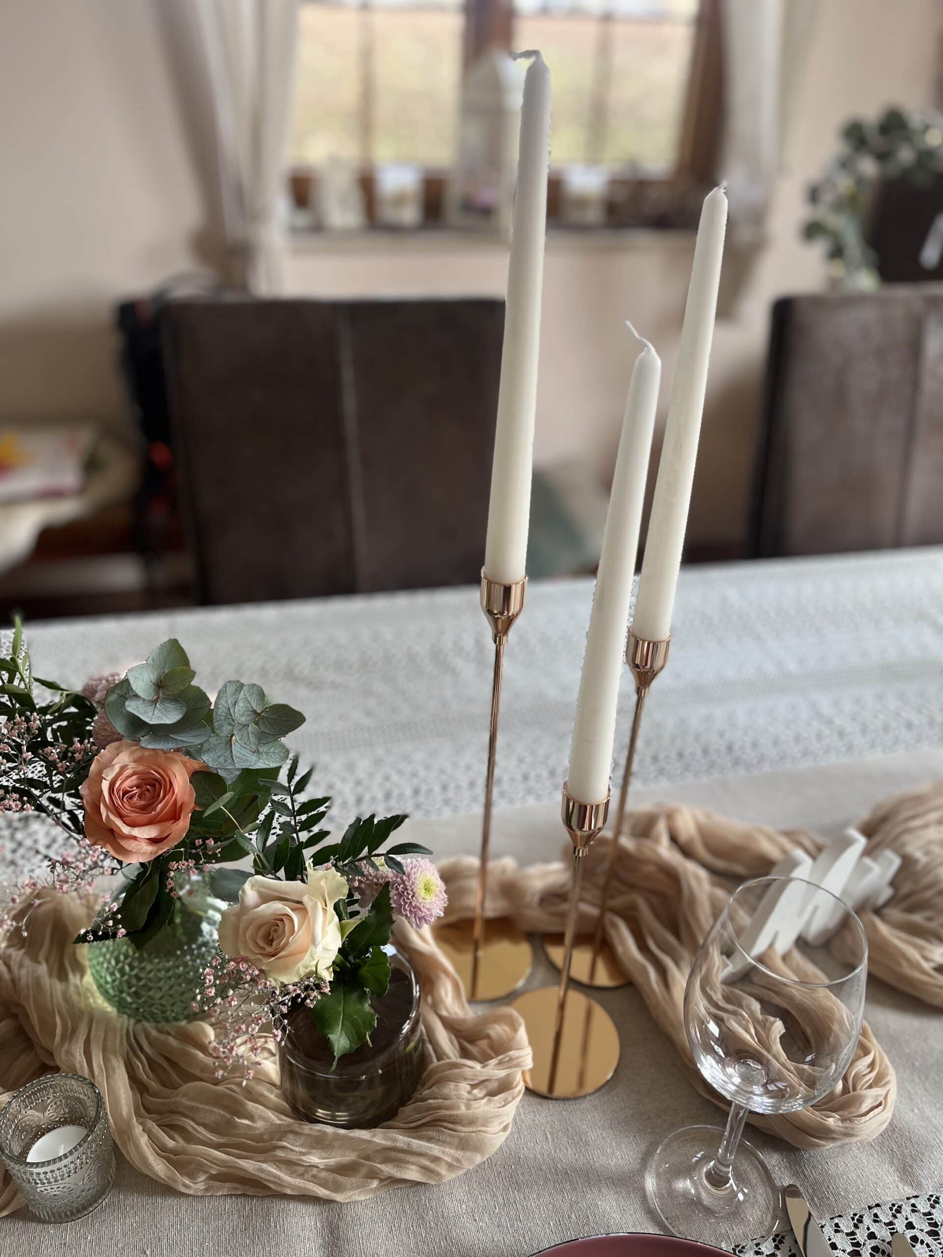 Unsere roséfarbenen Kerzenständer sind ein echter Hingucker bei eurer Tischdekoration. Dabei ergänzen sie jeden Hochzeitsstil und passen perfekt zu verschiedenen Farbkombinationen. Gerne könnt Ihr die verschiedenen Größen auch einzeln mieten.